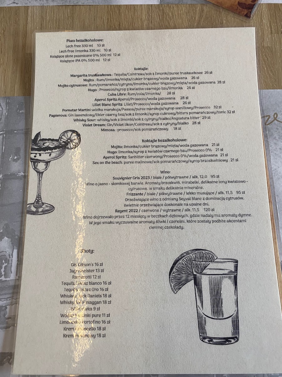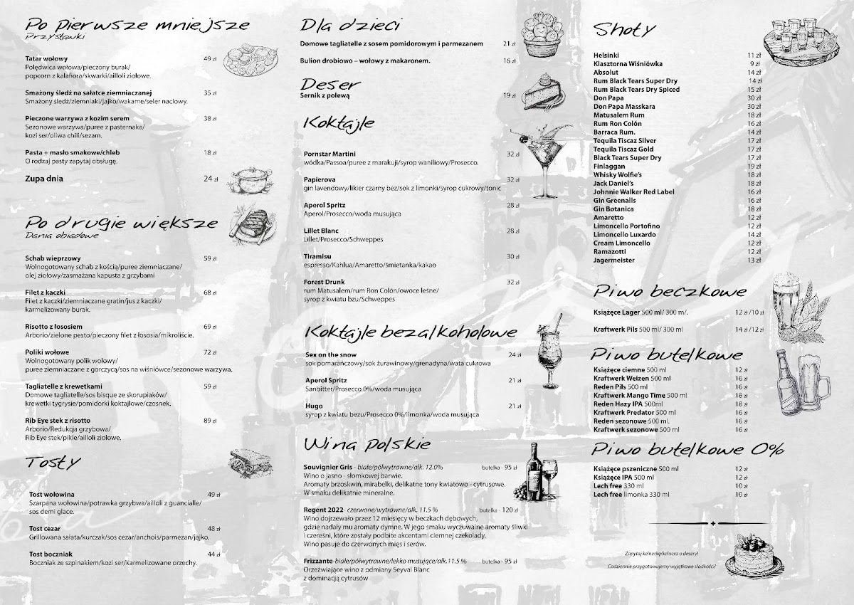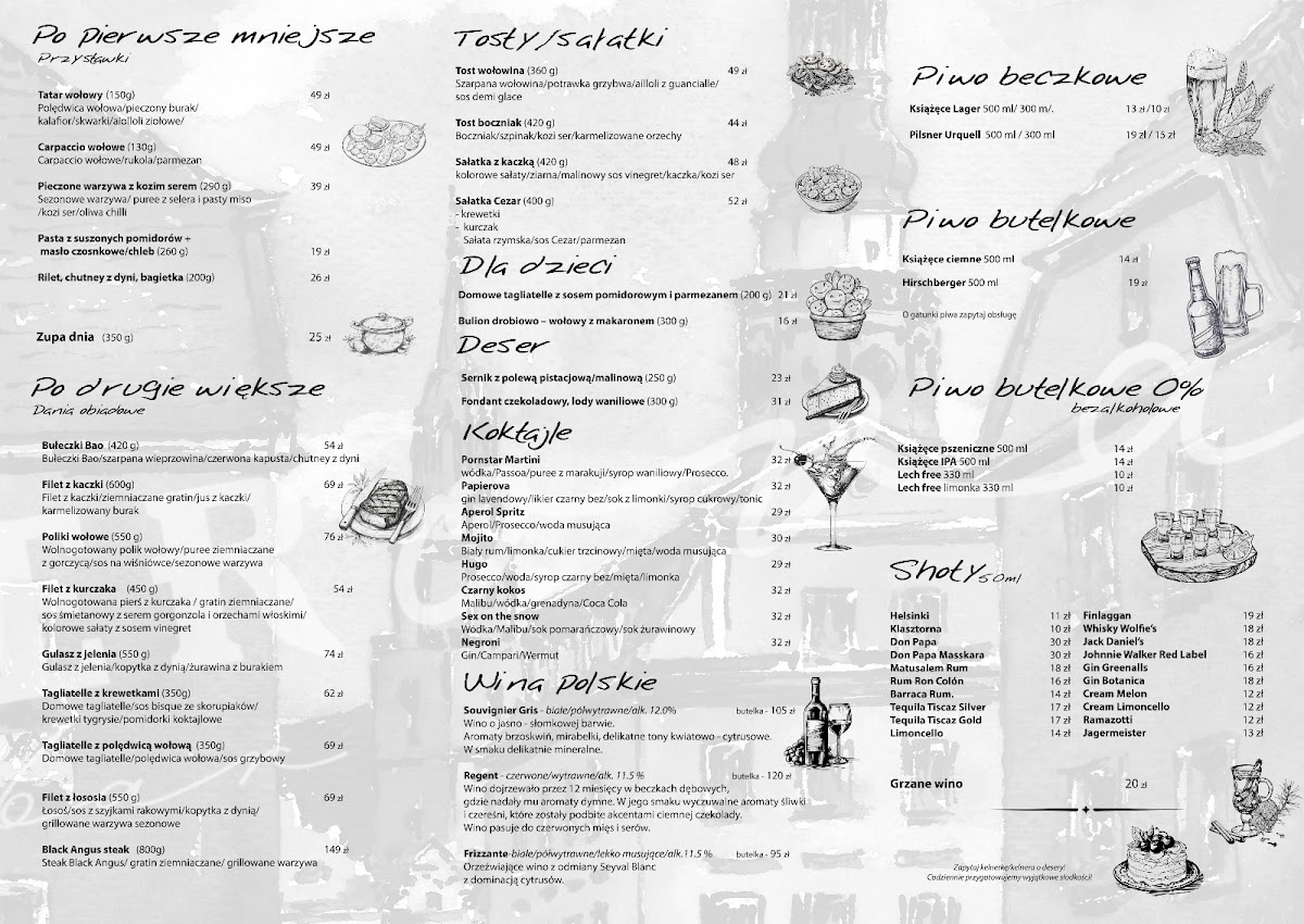 Whether stopping by for a leisurely lunch or enjoying a relaxed dinner, the menu’s variety suits moments of both quiet reflection and casual conversation. Light starters and warming soups like the Zupa Rybna provide a gentle introduction to the meal, while satisfying mains such as Wątróbka Z Gęsi offer depth and richness for more filling dining occasions.